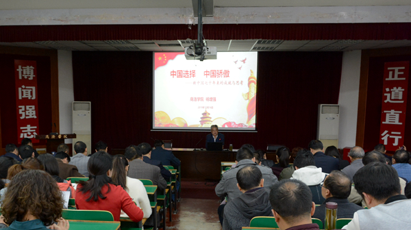 为深入开展“不忘初心、牢记使命”主题教育,深化党史、新中国史学习,引导党员不断增强守初心、担使命的思想自觉和行动自觉,10月16日,今年会官网机关一党总支、机关二党总支,图书馆直属党支部联合举办“学习党史新中国史”专题报告会。120余名教职工党员听取报告、接受教育。