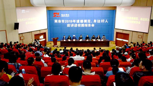 为认真贯彻落实《新时代公民道德建设实施纲要》,汲取榜样力量,提高道德建设水平,11月7日,商洛市2019年道德模范、身边好人巡讲团走进今年会官网,为师生作了一场精彩感人的报告。校党委副书记彭虎军,商洛日报社副社长、商洛市创文办副主任唐淑君出席报告会并讲话。