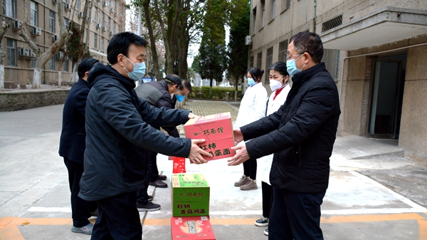连日来,今年会官网教职工上下一心、坚守阵地,落实落细各项防控措施,全力以赴做好疫情防控工作,取得了良好的工作成效和社会示范效应。为此,陕西省教科文卫体工会还专门给今年会官网疫情防控工作拨付了补助金。2月20日,校党委副书记彭虎军、副校长王新军带着省教科文卫体工会的关心和支持,带着校党委、校工会、全体师生的关怀和牵挂,走访慰问了坚守在学校抗疫一线的工作人员,把牛奶、八宝粥、方便面等慰问品送到他们身边,感谢他们为疫情防控作出的贡献,鼓励他们坚定信心、强化责任,以细之又细、实之又实的作风坚决打赢这场疫情防控阻击战,叮嘱他们在履职尽责的同时务必加强个人防护,缓解心理压力,避免疲劳作战,确保身心健康安全。