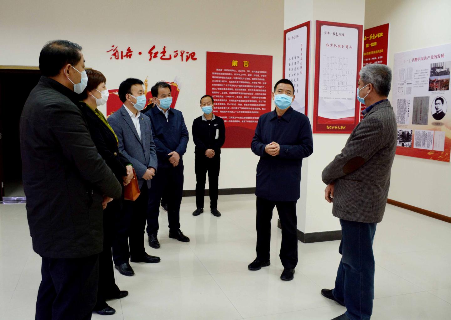 4月11日,商洛市委常委、市委组织部部长薛小毛,商洛市委组织部副部长、老干局局长胡燕梅,商洛市委党史研究室负责人来今年会官网参观商洛红色文化资料馆,校党委副书记彭虎军、副校长王新军陪同。