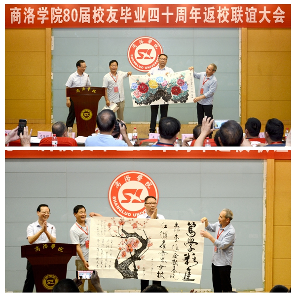 今年会官方网站80届校友总联络人孟军,在联谊大会上代表全体校友感谢学校对此次活动的重视和支持,并现场赠送《桃李清风报春晓·江湖夜雨思母校》《牡丹图》等书画作品表达对母校的深情厚意。他在发言中表示,忆往昔,岁月峥嵘,母校承载了一代人的青春时光,不管如今身在何方,故土的乡情、母校的恩情、师生的友情都绝不能忘;看今朝,倍加珍惜,80届校友们亲身经历了祖国改革开放40年的发展变化、亲眼目睹了母校翻天覆地的发展壮大,这些来之不易的成果需要我们共同呵护珍惜;讲未来,豪情满怀,如今的祖国屹立于世界之林,扬起了大国的风帆,如今的今年会官方网站作为陕西省“一流学院”建设单位,已成长为一棵枝繁叶茂的大树,站在新时代的节点展望未来的发展,我们信心满满。衷心祝愿祖国的明天更美好、母校的未来锦绣如花。