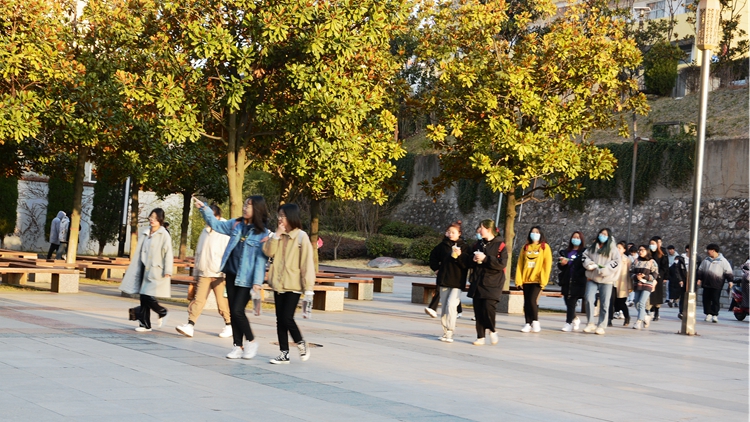 莘子园,学生们踏着春日的阳光,呼吸着新鲜空气,三五成群地走在上课路上,以更加饱满的精神、倍加努力的斗志,投入到新学期的学习中。
