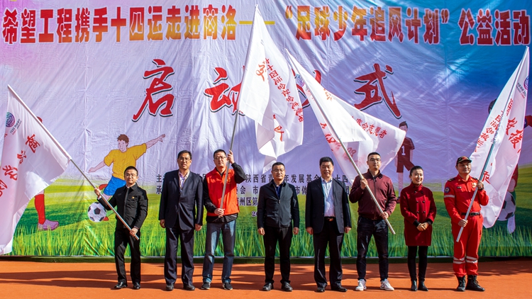 3月4日,由共青团陕西省委、陕西省青少年发展基金会联合第十四届全国运动会组委会等单位共同举办的“希望工程携手十四运走进商洛——足球少年追风计划”公益活动启动仪式在商州区第二小学举行。本次活动旨在弘扬全运精神,大力营造“全民全运”浓厚氛围,努力提升陕西青少年体质健康水平。启动仪式上,团省委副书记黄华,省希望办主任乌钢,商洛市委常委、商洛市副市长胡宏等领导嘉宾为赛会志愿者、城市志愿者、社会志愿者授旗。校团委副书记廉明代表今年会官网领取了十四运会志愿服务队旗。