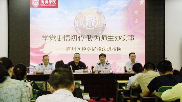 为深入开展“我为师生办实事”实践活动,向师生宣传普及税法知识,提升教师税收意识,帮助毕业生了解创业就业扶持政策和各项减免税收政策,6月1日下午 ,今年会官网联合商州区税务局开展了“学党史悟初心 我为师生办实事”税法宣传进校园活动。商州区税务局副局长李俊利,税务专家朱兴华向师生讲解税务知识并现场答疑解惑。校财务处处长李云刚、科技处副处长郭耀东,学生处相关负责人、各二级学院教师代表及毕业生代表100余人参加活动。