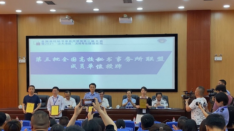 本次大会由教育部职业院校教育类专业教学指导委员会、中国对外贸易经济合作企业协会指导,全国高校秘书事务所联盟主办,湖南司法警官职业学院、中创慧文(北京)科技有限公司承办。共有来自全国33所本科、高职院校的百余名师生代表参会。会议期间举办了2021年“泛大湾区”文秘专业建设论坛,3名来自高校的专家和两位文秘教育类企业负责人分别作了《“现代文秘专业”更名后的发展思路》《全国高校秘书事务所联盟发展与总结报告》《高水平文秘专业群的组群逻辑与实施》《司法体制改革背景下法律文秘专业人才培养的实践与思考》《文秘类“1+X”证书的开发与实践》5场学术报告,分别就当前国内高校秘书类专业的发展趋势、建设路径、人才培养、合作模式、技术革新等重要问题进行了全面深入的分析,并分享了富有启发意义的经验做法和实践要领。在论坛分会场,大会承办企业代表和湘警职院秘书事务所学生代表先后作了《会议策划方案比赛参赛作品的企业立场解析》《全国高校秘书事务所联盟团建》《大学生初入职场面临的法律问题及处理方法》《三孔一线装订法学习与实操》4场专业实践报告和技能讲解,并展开了热烈的现场讨论。