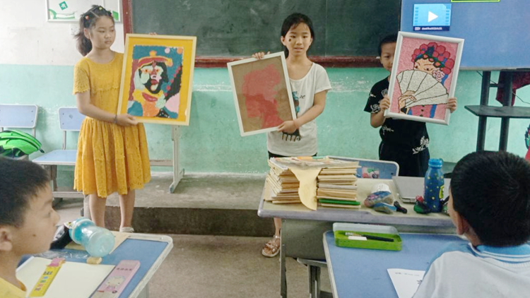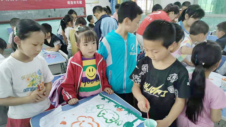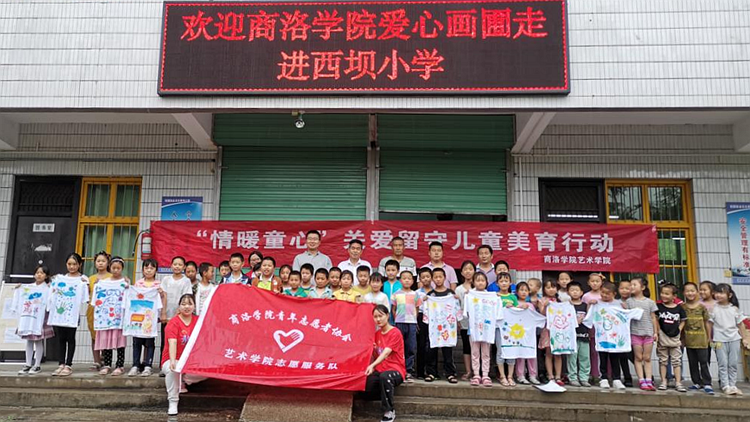 7月2日,今年会官网承担的公益项目“乡村爱心画圃”走进了洛南县保安镇西坝小学,项目指导教师、艺术学院教师李斌、王淦卿和李萍及项目成员参加活动。