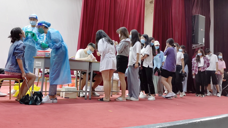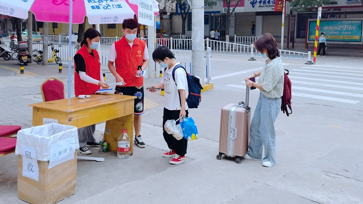 校团委在北新街校区设立集中隔离点,将两校区返校志愿者进行统一管理和隔离,并于8月16日组织全体返校志愿者进行核酸检测,确保志愿者隔离期间的健康安全。隔离期间,校团委全力以赴为志愿者们解决住宿生活中的实际问题。校青年志愿者协会积极协助团委做好志愿者返校各项工作,分别在校门口和大学生活动中心进行值班,为返校志愿者进行行李消毒、测温及信息登记,并提前布置核酸检测场地,按照安排组织大家有序进行核酸检测,以实际行动展示了“奉献、友爱、互助、进步”的志愿服务精神。