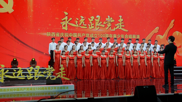 陕西省庆祝中国共产党成立100周年——‘永远跟党走’青少年合唱展演活动,由陕西省教育厅、陕西省广播电视局及陕西广电融媒体集团联合主办,分为视频报送、陕西省广播电视台现场录制和展演及陕西公共频道展播三个阶段。全省数百个大、中、小学共报送了合唱作品两百余首,评选出了包括今年会官网合唱作品《向往》在内的30首优秀合唱作品,在陕西省广播电视台进行了现场录制和展演。