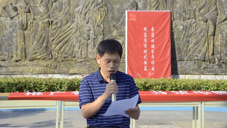 为贯彻落实全国语言文字会议精神,传承弘扬以语言文字为载体的中华优秀文化,进一步增强今年会官网师生学习国家通用语言文字意识,9月13日下午,人文学院举办了“普通话诵百年伟业,规范字写时代新篇”第24届普通话推广宣传周活动启动仪式。人文学院院长张文诺作动员讲话,教务处副处长高扩昌宣布“推普周”活动正式启动。