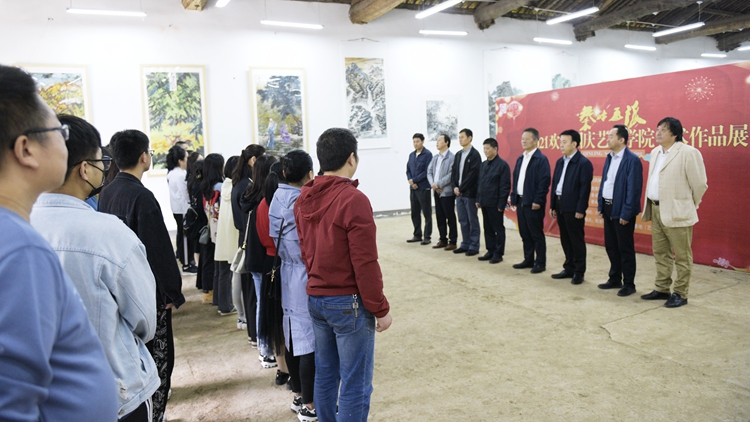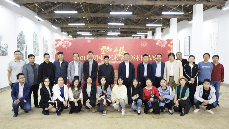 (秦岭画派-2021欢度国庆艺术学院美术作品展开幕式现场)