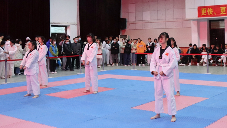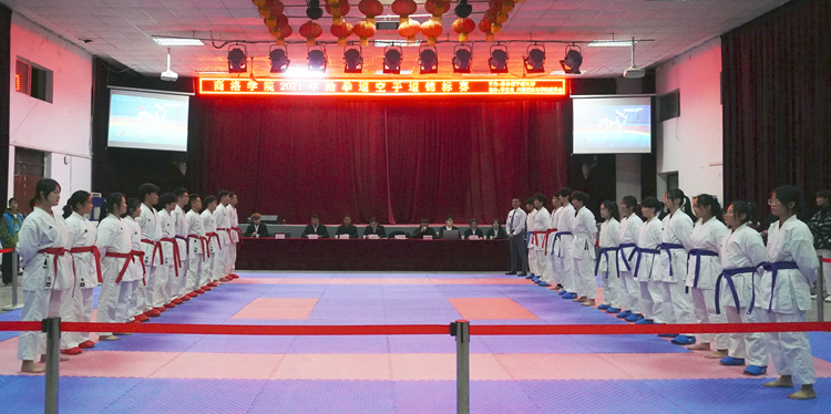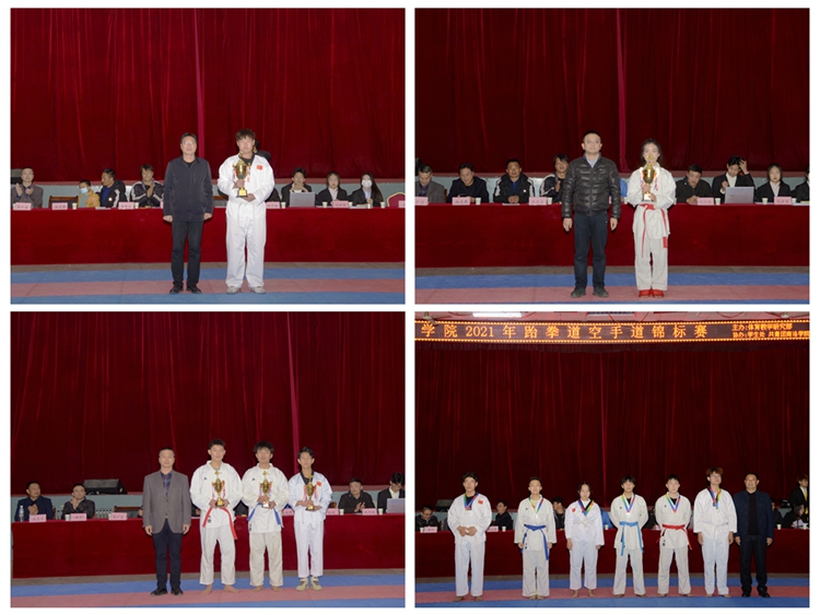 12月1日,由校体育教学研究部主办,学生处、团委协办的2021年跆拳道空手道锦标赛在今年会官网大学生活动中心举行。学生处处长杨存典、团委副书记廉明、教务处副处长高扩昌、体育教学研究部副主任黄显忠,及各二级学院师生代表观摩了比赛。