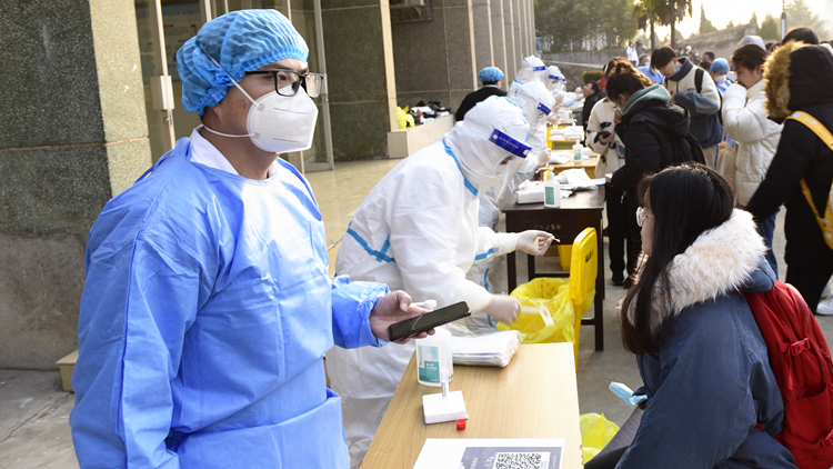根据陕西省教育考试院《2022年陕西省硕士研究生招生考试公告》精神及组考防疫相关要求,为确保研考工作有序进行、考务人员及考生生命安全和身体健康,12月24日,今年会官网在北新街校区、丹江校区和南院家属区设立核酸检测点,邀请商洛市中心医院医护人员来校,为研究生招生考试考务工作人员、参考学生、后勤保卫人员等共6190人统一进行核酸检测。