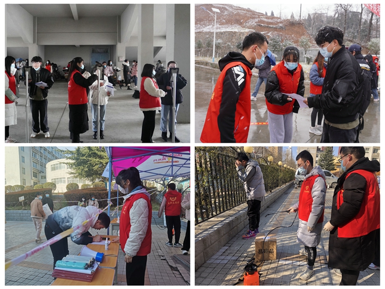 志愿者们积极配合学校疫情防控工作,协助排查师生中密切接触者、次密切接触者及14天内中高风险旅居史人员;在学校研究生招生考试中,承担疫情防控及外围组考工作;在学校核酸检测中,协助维护现场秩序,提醒师生保持一米距离,打开健康码,佩戴好口罩;在快递消杀工作中,手持消毒水,对每一个进校快递进行严格消毒,防止病毒在校园传播。志愿者们坚守岗位,应声而动,赶赴需要帮助的地方,校园中随处可见志愿者们服务的身影,他们是校园疫情防控一支重要的力量。