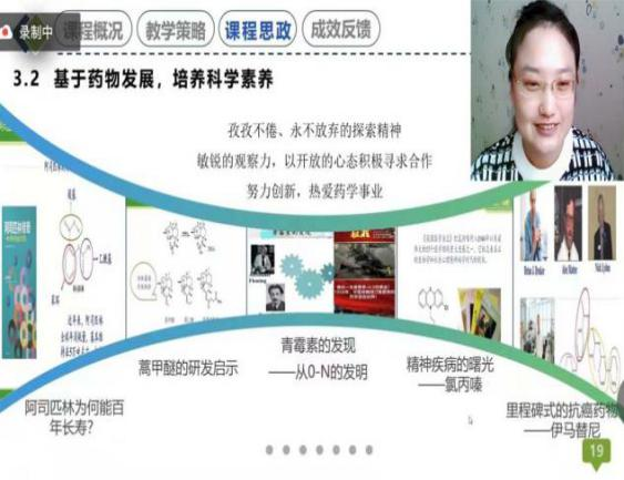 发掘思政育人元素,强化课程思政顶层设计。生物学院教工第二党支部组建了制药工程教学团队,聚焦中药学课程专业特色和制药工程专业的育人目标,提出“守正创新,立德树人”的课程思政建设理念。紧扣立德树人根本、强化传承创新目标、抓牢质量提升主线、抓好师资队伍建设,为中药学课程思政教学奠定基础。坚持把培育和践行社会主义核心价值观贯穿师生专业课实践教学、社会实践活动、创新创业教育、志愿服务等过程,增强思想引领和价值观塑造的实效性。将专业课与产业链衔接,推进对接产业链的专业思政实现路径,培养学生爱岗敬业与责任担当,弘扬爱国精神、厚植家国情怀。构建全新的立体化实践教学体系,实施专业课程思政,落实全员育人、全程育人、全方位育人。