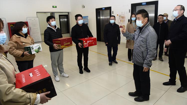 3月21日下午,校长范新会、党委副书记彭虎军、副校长郭瑾一行看望慰问了北新街校区疫情防控一线工作人员,并为他们送去了慰问品。党委办公室·校长办公室主任刘勇、工会副主席刘霞陪同慰问。