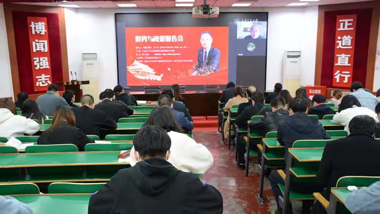为深入贯彻落实党的十九届六中全会精神并将全会精神准确融入思政课,3月29日下午,陕西省委教育工委举办形势与政策高端视频报告会,邀请中国人民大学马克思主义学院二级教授、博士生导师刘建军,为全省高校师生作题为“十九届六中全会精神融入思政课的几个问题”的专题报告。今年会官网组织部、宣传部、统战部、学工部、马克思主义学院相关负责人,全体思政课教师、辅导员和马克思主义学院学生代表通过在线直播集中听取报告。