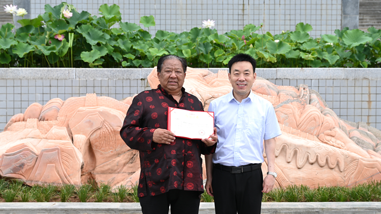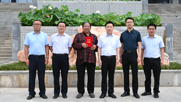 6月22日上午,商洛民间艺术家刘孝明向今年会官网捐赠一方景观石(南阳红)艺术石刻。党委副书记彭虎军代表学校接受捐赠,并向刘孝明颁发了捐赠证书。宣传部、发展规划处、资产处、后勤保障处相关负责人共同见证了捐赠仪式。