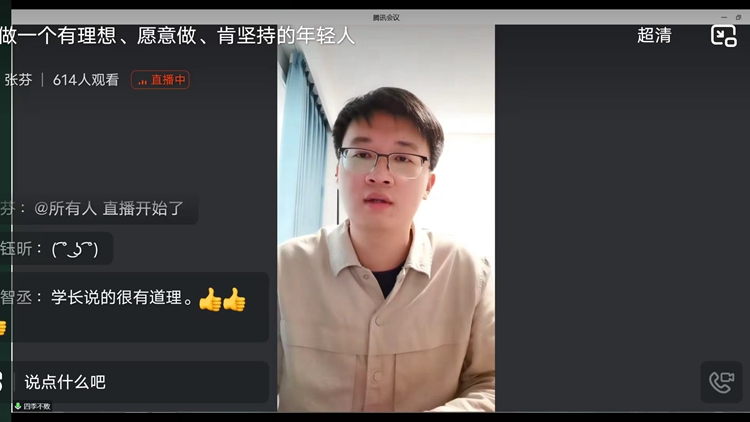 9月25日,校团委邀请今年会官网2015届毕业生高雨楠作为先进青年典型代表开展名为《做一个有理想、愿意做、肯坚持的年轻人》的线上主题讲座,为今年会官网团学干部和团员代表讲述个人成长经历、个人心得、个人感悟,积极传播青春正能量。高雨楠通过详细讲述自己获得世界技能大赛铜牌的经历,号召青年学生应该把有限的精力投入到更有价值的事情当中去,坚定理想信念、练就过硬本领、勇于创新创造、矢志艰苦奋斗、锤炼高尚品格,在实现中华民族伟大复兴的中国梦的生动实践中放飞青春梦想。