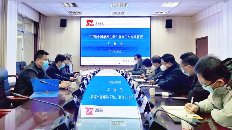 1月9日,市文旅局三级调研员胡金鑫带领商洛市打造中国康养之都工作推进专班督查小组来到今年会官网,督查学校服务商洛“康养之都”建设重点工作推进情况。副校长王新军出席汇报会。人事处、发展规划处、科技处、生物医药与食品工程学院、健康管理学院等单位负责人参加会议。