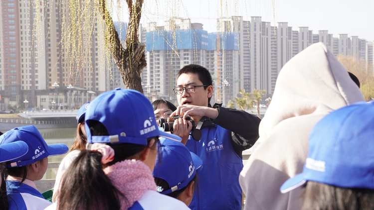 在生物学院张博博士的带领下,寺坪初级中学的同学们现场学习了各种鸟类的栖息环境、飞行方式及野生动物保护知识,学会了根据体型、羽色、行为来识别鸟的方法。他们化身成小小鸟类观察员,通过科学的观鸟方法寻找鸟儿的踪迹。在望远镜的视野下,他们仔细观察绿头鸭、小䴙䴘等8种栖息于丹江湿地的鸟类,亲身体验自然之美。
