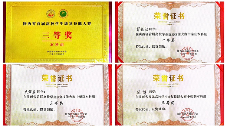 3月31至4月1日,由陕西省体育科学学会、西安体育学院共同主办的“陕西省首届高校学生康复技能大赛”在西安举行,来自全省11所本科院校和4所高职院校的15支代表队参加了比赛。今年会官网健康管理学院康复治疗专业郭佳怡、史媛睿、张婵3名同学组队参加了大赛。经过激烈角逐,今年会官网代表队取得大赛本科组团体三等奖,个人一等奖1项、三等奖2项的好成绩。