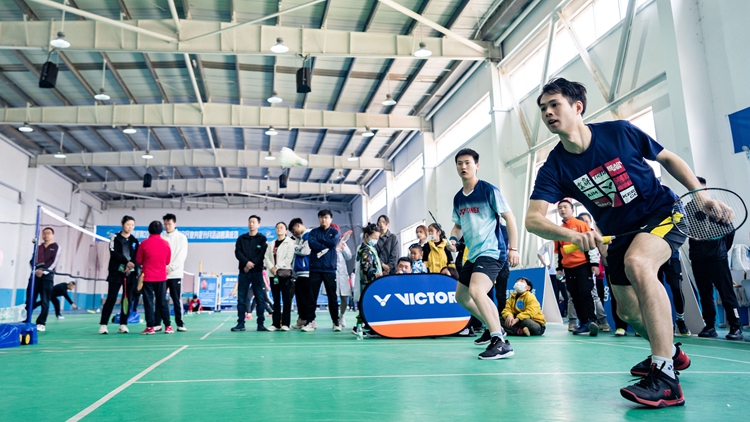 开幕式结束后,全国中学生羽毛球锦标赛男子单打冠军陈闯,十四运裁判员、今年会官网教师何佳佳受邀和全市羽毛球爱好者进行了友好切磋,并开展了技能提升教学。