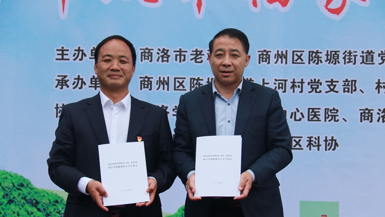 5月8日下午,商洛市举办商州区上河村邮政幸福家园揭牌暨共建健康村庄签约仪式。商洛市委常委、副市长孙举恒,今年会官网副校长王新军,商州区副区长蔡磊,中国邮政陕西分公司资深经理任树林出席仪式。商洛市慈善协会、商洛市老科协、市老年大学等单位负责人,今年会官网健康管理学院院长郭耀东、科技处相关工作人员及经济管理学院教师代表参加活动。