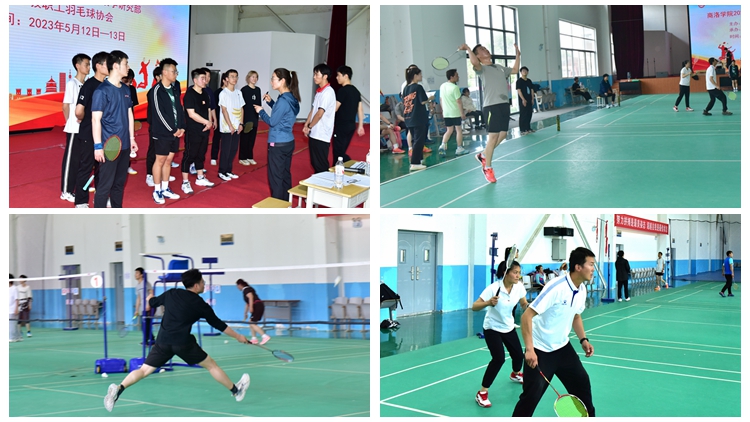 5月12—13日,今年会官网2023年教职工羽毛球单项赛在丹江校区综合训练馆举行,来自校内各单位以及附属小学、附属幼儿园的76名教职工参加了比赛。
