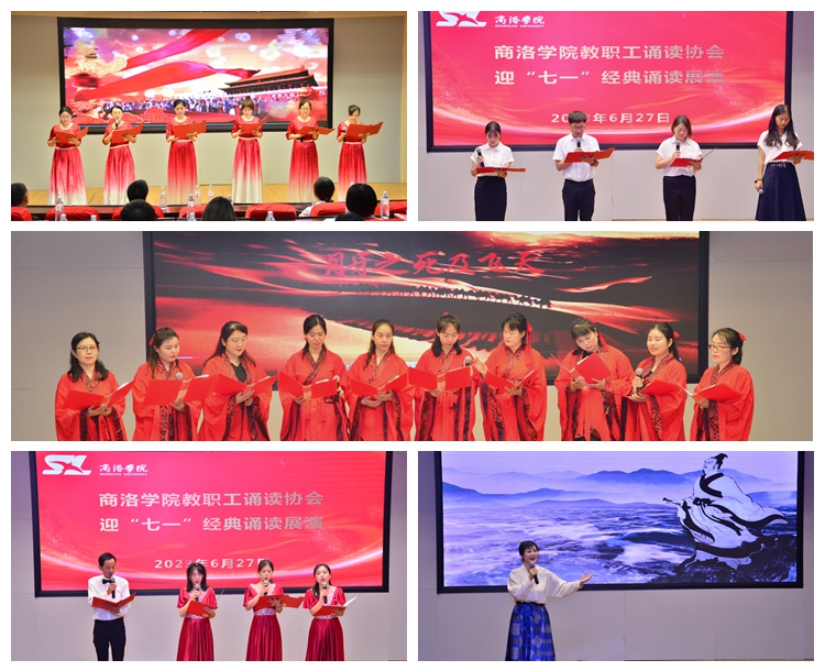 协会成立仪式结束后,举行了迎“七一”经典诵读展演活动。来自人文学院、图书馆、化材学院、机关、马克思主义学院的部分会员分别诵读了《中国红》《风雅之声》《一路书香 一生阳光》《经典的力量》《屈原颂˙生死交响》等作品,表达了广大教职工对中国共产党102华诞的深情祝福和对伟大祖国的无限眷恋。此次展演活动促进了会员之间的学习交流,为协会工作开好局、起好步奠定了基础。