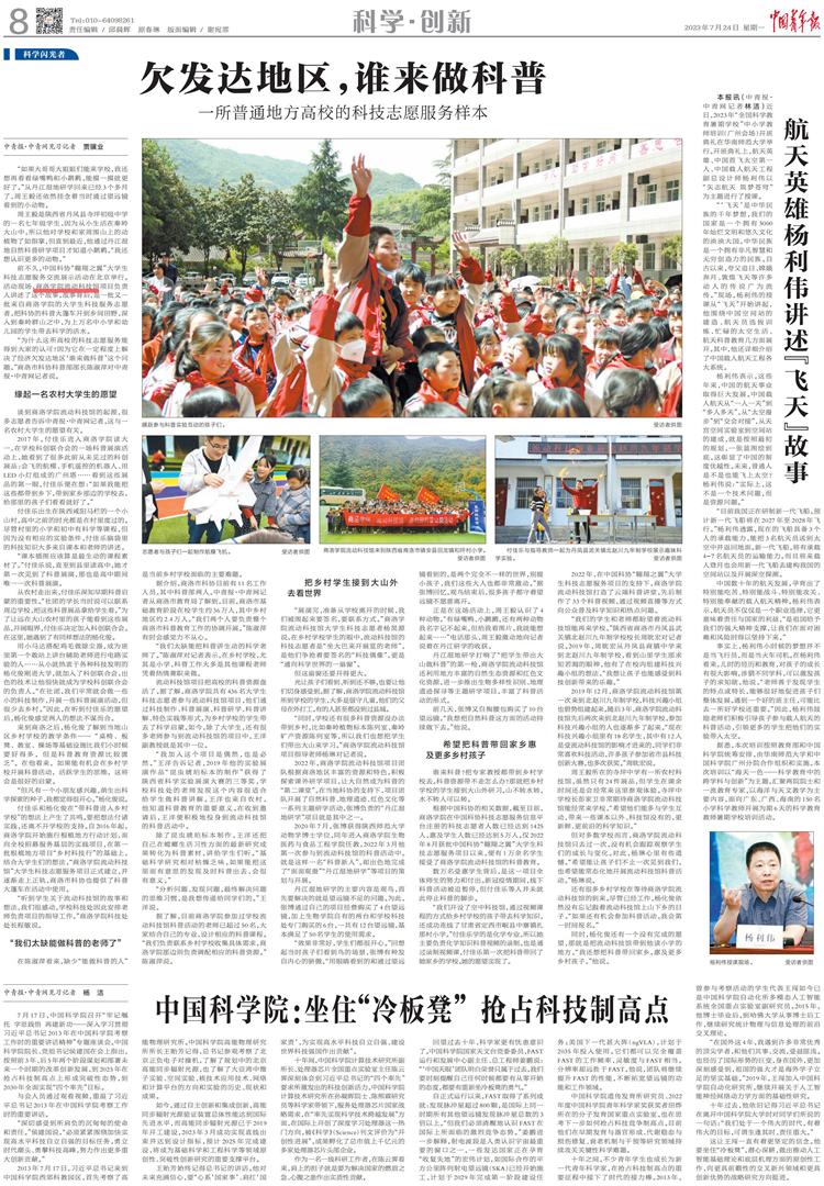 7月24日,《中国青年报》第8版以《欠发达地区,谁来做科普一所普通地方高校的科技志愿服务样本》为题,对今年会官网流动科技馆科技志愿服务项目进行了专题报道。