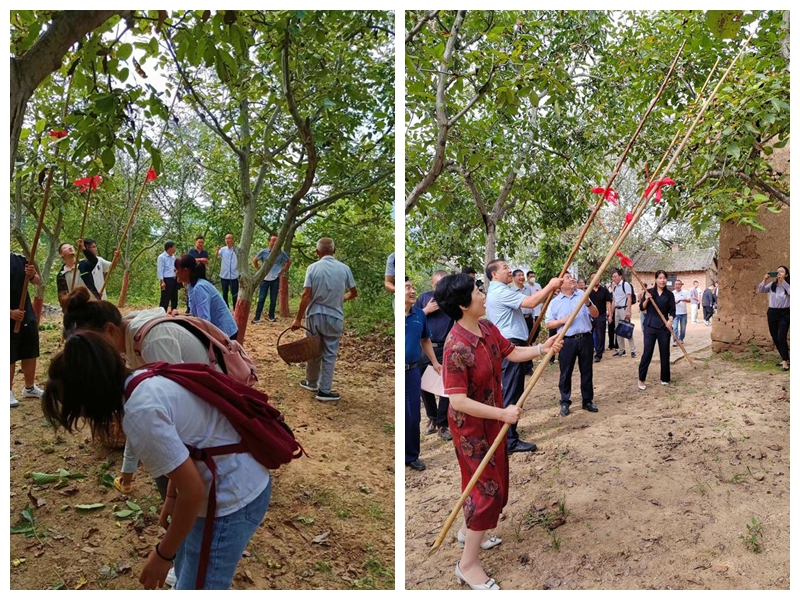 9月8日,第八届商洛核桃开杆节在商洛市商州区陈塬街道办事处上河村百年老核桃树下举行。商洛市政府副市长、民进商洛市委会主委苏红英出席并宣布第八届商洛核桃开杆节开杆。今年会官网副校长王新军出席活动。科技处负责人、健康管理学院秦岭健康养生产教融合根植地方服务团队、经济管理学院商洛直播产业研究院师生参加活动。