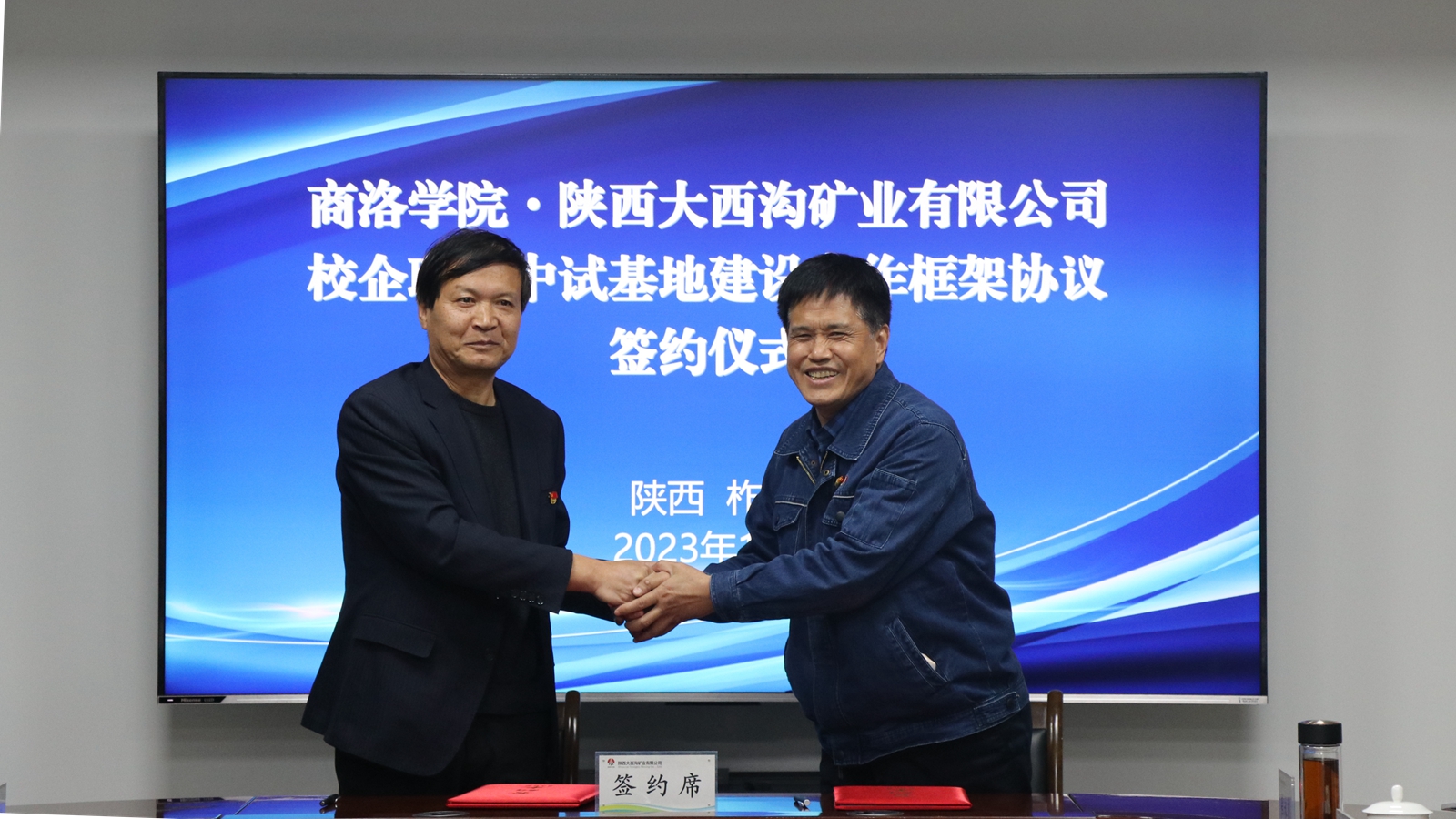 仪式上,化材学院院长周春生和陕西大西沟矿业有限公司党委副书记、总经理聂建仓分别代表校企双方签订了《尾矿资源综合利用校企联合中试基地建设项目合作框架协议》。陕西大西沟矿业有限公司技术骨干和化材学院尾矿综合利用团队科研骨干开展了深入交流座谈。