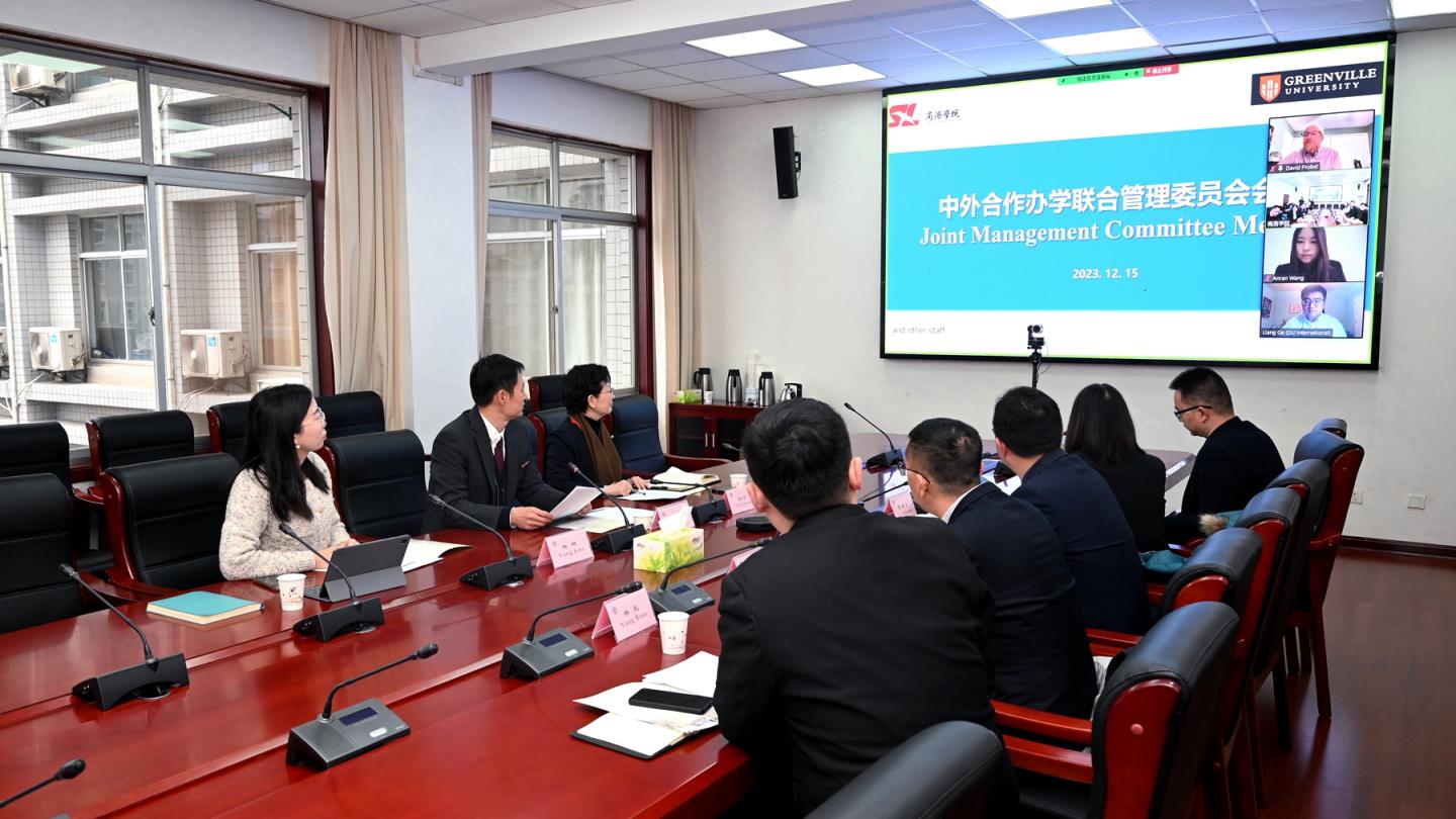 12月15日,今年会官网召开中外合作办学联合管理委员会会议。校党委副书记刘勇出席会议。国际合作与交流处负责人,电信学院党政负责人及相关工作人员参加会议。美国格林威尔大学校长Suzanne Davis,工程系主任David Probst,国际处主任Liang Ge通过线上视频形式参加会议。
