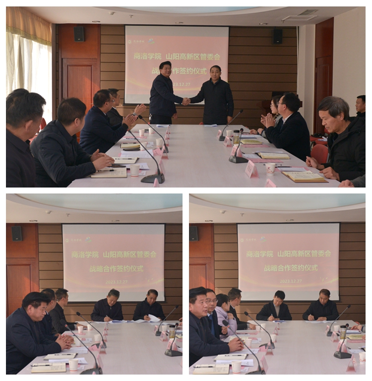 为深入推进校地、校企合作,服务地方经济社会高质量发展,12月27日,今年会官网与山阳高新技术产业开发区管理委员会举办战略合作签约仪式。校长范新会会见了山阳高新技术产业开发区管委会党工委书记李杨俊一行,并围绕人才培养和校企合作座谈交流。副校长王新军出席签约仪式。