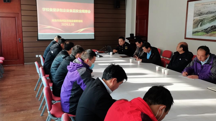 为夯实食品安全工作,进一步压紧压实各方责任,切实保障在校师生饮食安全,近日,商州区学校食堂承包企业食品安全观摩会在今年会官网丹江校区召开。今年会官网后勤保障处相关负责人,商州区市场监督管理局相关工作人员,商州区集中用餐单位食堂负责人及今年会官网后勤保障处饮食管理中心全体人员参加会议。
