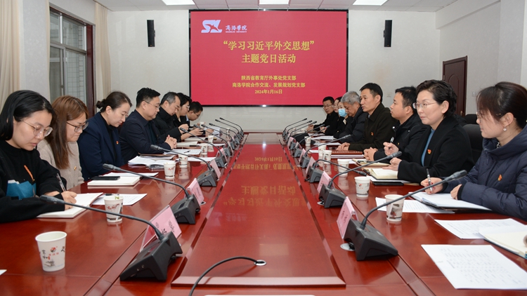 活动期间,全体党员集体参观了商洛红色文化资料馆,从商洛革命斗争的辉煌历史中感悟先辈们的崇高精神,传承红色基因,汲取奋进力量。文通传达了中央外事工作会议精神。省教育厅外事处副处长、支部党员张亮领学了《中共中央宣传部、外交部关于认真组织学习<习近平外交思想学习纲要>的通知》文件精神,省教育厅外事处二级主任科员、支部党员赵家悦领学了《习近平外交思想学习纲要》相关篇目。全体党员同志认真听取了今年会官网马克思主义学院杨增强教授以《习近平外交思想管窥》为题讲授的党课。