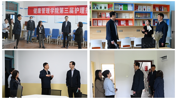 姜勇一行还实地考察了外教公寓、ICC项目学生宿舍、“寓”见“悦”享空间、省级标准化心理健康教育中心和护理学专业相关实训实验室等处。