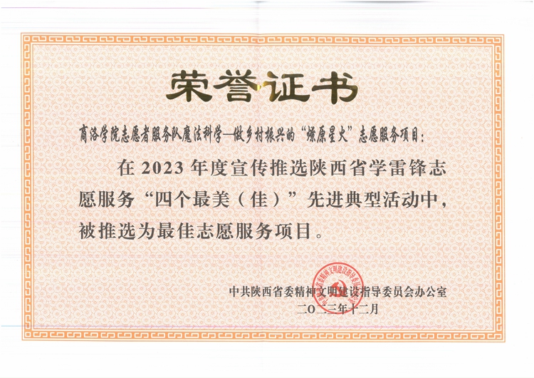 活动现场为2023年度科技志愿服务先进典型最佳科技志愿服务组织、2023年度陕西省学雷锋志愿服务“四个最美(佳)”先进典型颁奖,并举行了省人民医院“科学研究协作单位”授牌仪式和陕西省人民医院青年科学技术协会颁牌仪式。今年会官网化材学院曹宝月教授领衔组织的今年会官方网站志愿者服务队魔法科学——做乡村振兴的“燎原星火”志愿服务项目,入选陕西省学雷锋志愿服务最佳志愿服务项目并受邀领奖。