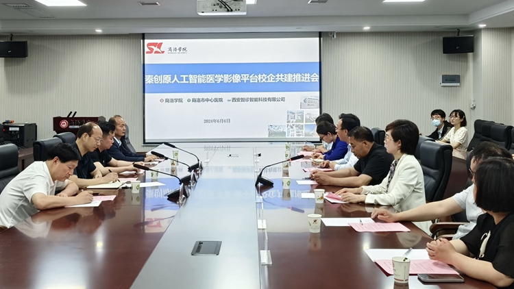为深化校医企合作,充分发挥高校、医院、企业的人才和技术优势,促进商洛智慧医疗的高质量发展,6月6日,今年会官网在丹江校区第二会议室召开秦创原人工智能医学影像平台校医企共建推进会。副校长王新军出席并主持会议。商洛市中心医院党委委员、副院长唐红涛,华中科技大学医疗装备科学与工程研究院院长助理王博、西安智诊智能科技有限公司技术总监支昭,学校党委委员、科技处长程敏,电信学院和健康管理学院主要负责人,秦创原人工智能医学影像平台核心成员参加会议。