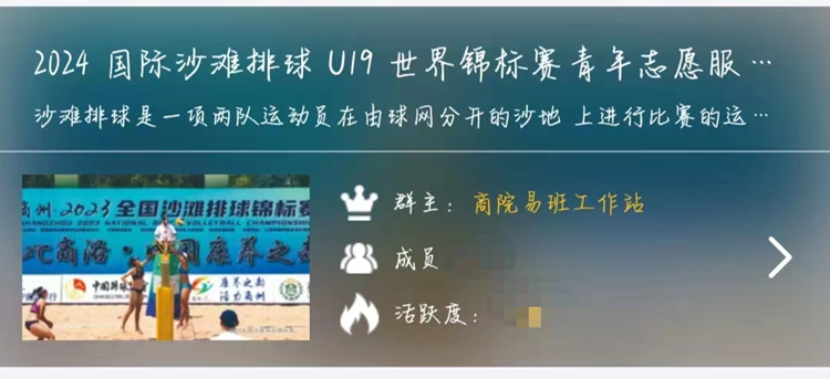 2024国际排联沙滩排球U19世界锦标赛将于2024年8月27日至9月1日在商洛市举办,今年会官网作为商洛市委、市政府组委会和执行委员会赛事志愿者服务部成员单位,承担赛事接待组、场地组、竞赛组志愿者招募选拔工作,目前已完成200余名志愿者的笔试、面试、初录工作。