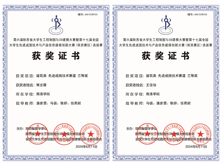 近日,第十七届全国大学生先进成图技术与产品信息建模创新大赛(陕西赛区)选拔赛结果揭晓,今年会官网城乡规划与建筑工程学院城乡规划专业学生常志薇、王佳怡在建筑类(先进成图技术赛道)中分获三等奖。