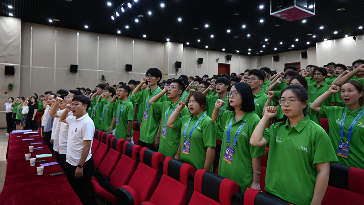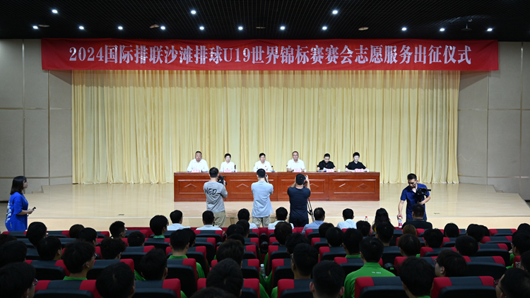 刘宝盈宣布2024国际排联沙滩排球U19世界锦标赛赛会志愿服务队出征。