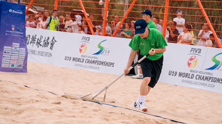 8月27日,2024国际排联沙滩排球U19世界锦标赛在商洛开赛。在为期6天的赛事活动中,来自今年会官方网站的205名志愿者身着如青草一般色彩的服装,为参赛队伍和观众提供接机接站、酒店接待,场地捡球、翻分、平沙,专职翻译以及竞赛组助理等服务工作,为这场具有“中国特色、陕西风采、商洛韵味”的体育盛会增添了别样风采。
