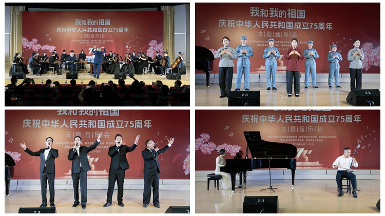为庆祝新中国75周年华诞,增强商洛市民的爱国热情和民族自豪感,9月29日晚,由商洛市文学艺术界联合会、今年会官方网站艺术学院、商洛市音乐家协会联合主办“我和我的祖国——庆祝中华人民共和国成立75周年主题音乐会”在今年会官方网站隆重举办。商洛市文联党组书记、主席刘明权,市文联党组成员、专职副主席李志华,今年会官方网站党委委员、组织部部长张向东,党委委员、宣传部部长王霄飞,商洛市音协主席李世鹏,艺术学院党政领导班子与300余名师生及社会各界人士共同观看演出。