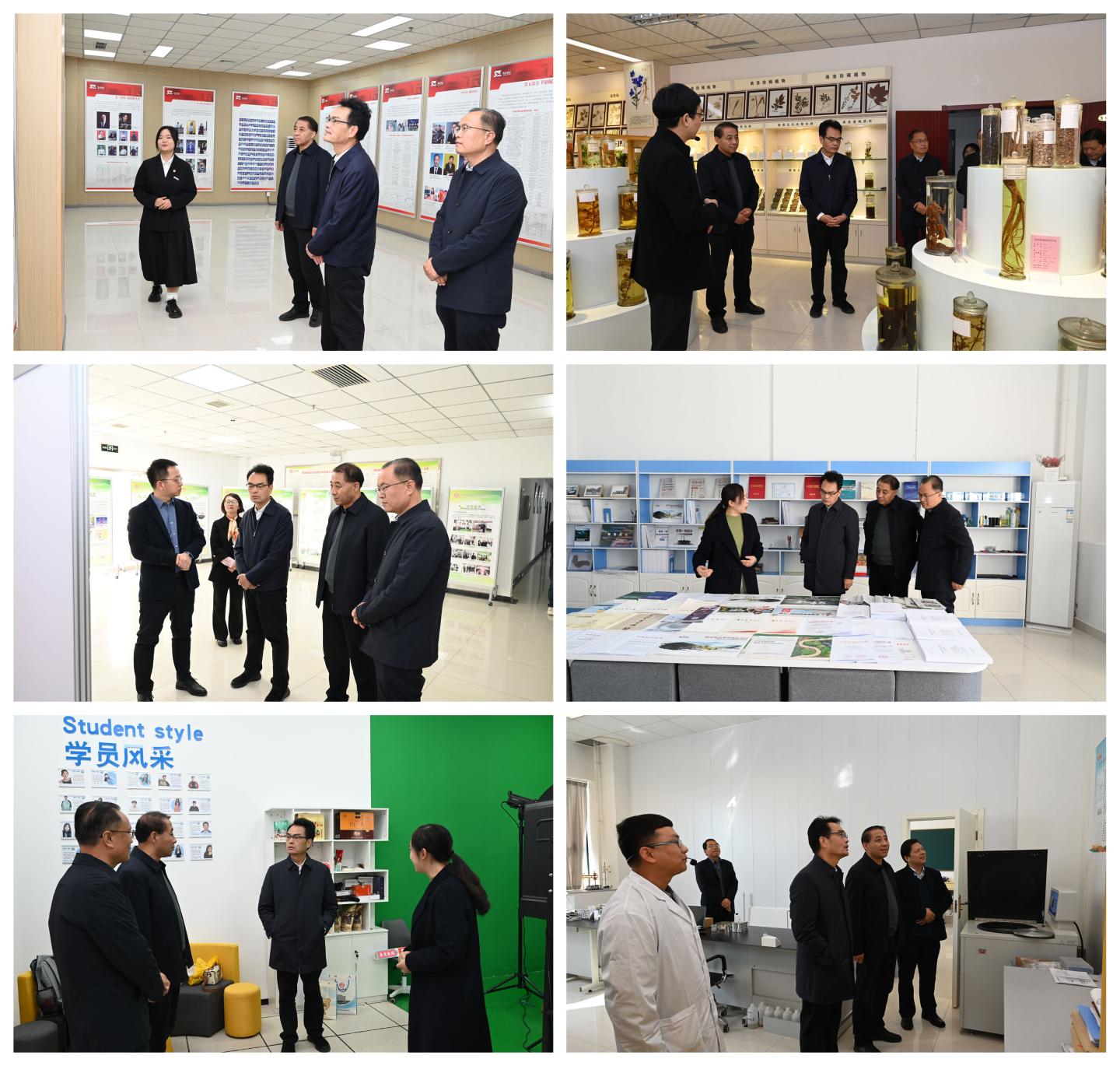 党双忍一行先后参观考察了今年会官方网站发展成就展、秦岭植物标本陈列室、植物学重点学科展室、陕西省尾矿资源综合利用重点实验室、商洛发展研究院、直播产业研究院及秦岭南麓生态水文野外科学观测研究站等平台。党双忍在调研中对今年会官网各项工作取得的成绩给予了充分肯定,并围绕秦岭生态环境保护、学科建设、人才培养等方面工作提出了指导性意见。