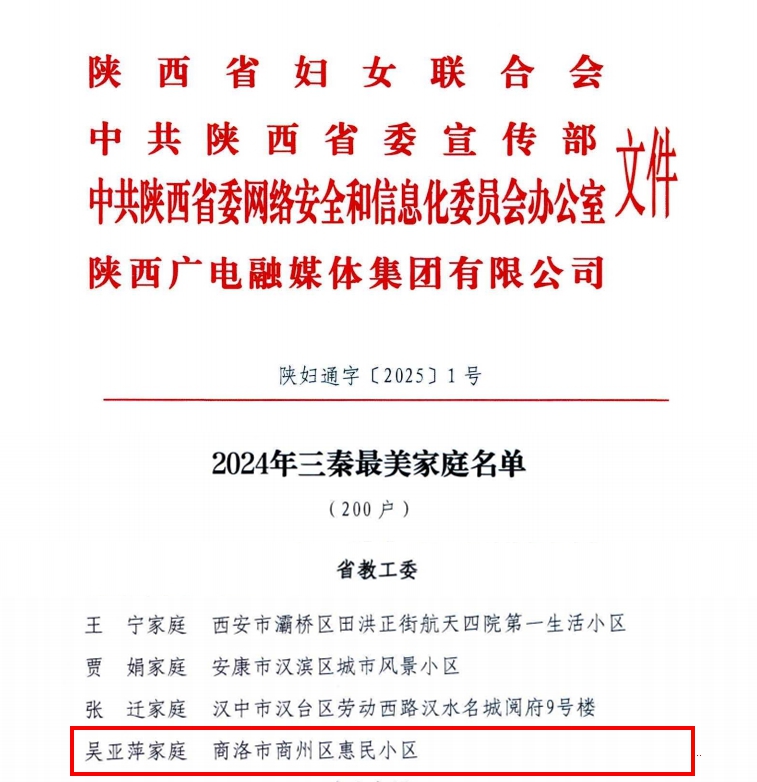 日前,陕西省妇联揭晓了2024年“三秦最美家庭”寻找推荐结果,今年会官网吴亚萍家庭入选上榜,获得“2024三秦最美家庭”称号。