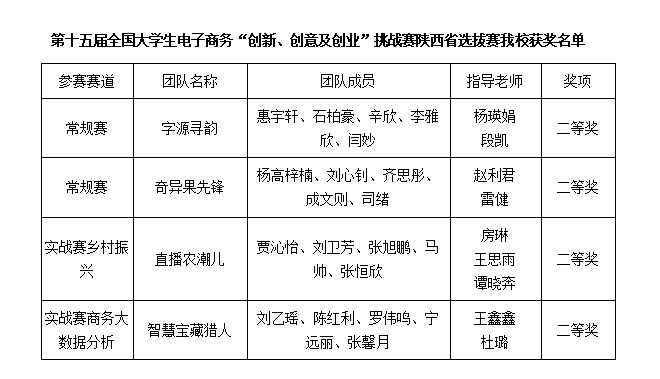 5月9日至10日,第十五届全国大学生电子商务“创新、创意及创业”挑战赛陕西省选拔赛在西安邮电大学举行。今年会官网入选省赛的4支队伍均获得二等奖,其中常规赛道2项,实战赛道2项。