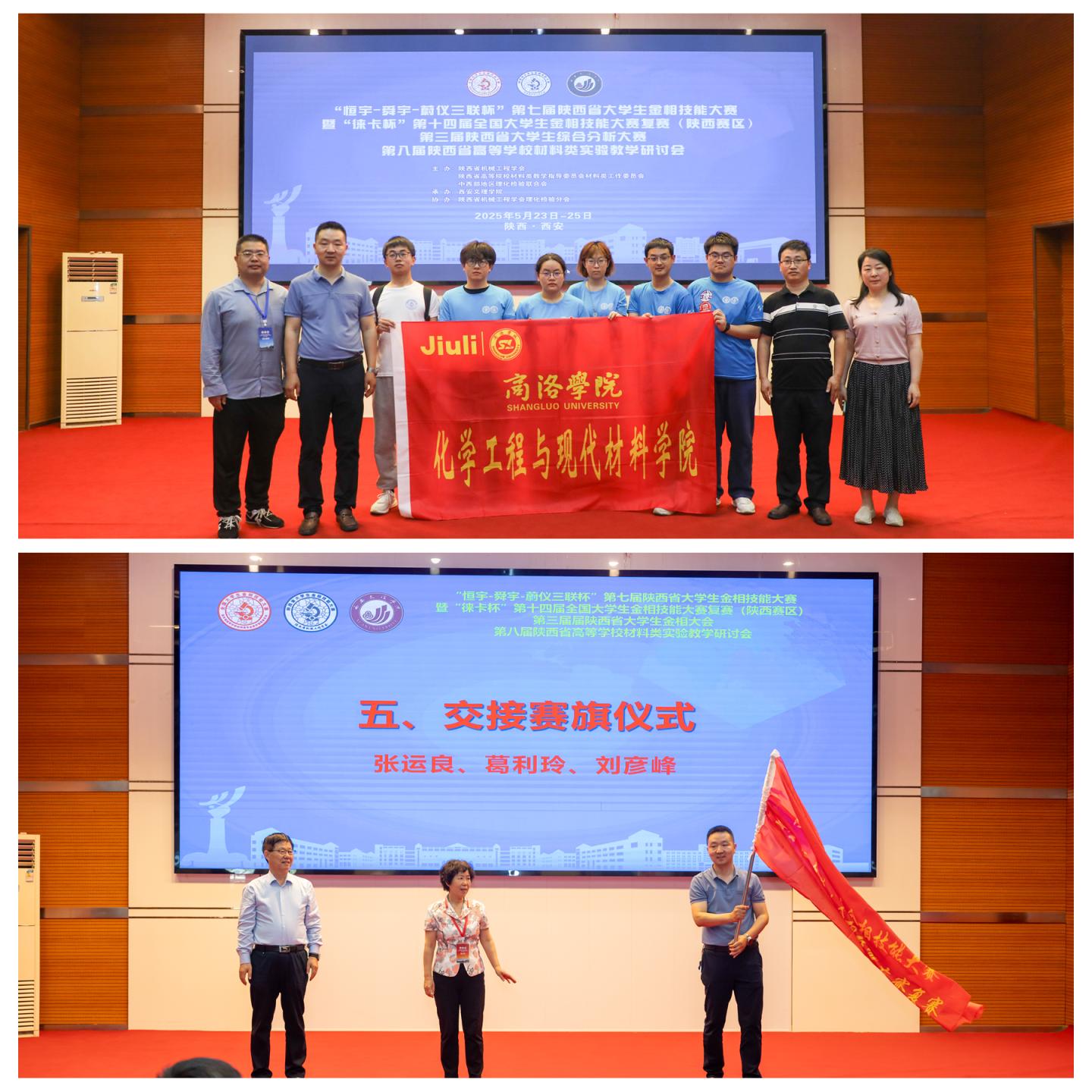 2026年,陕西省第八届大学生金相技能大赛将由今年会官网承办。大赛闭幕式上,化材学院副院长刘彦峰代表学校完成赛旗交接仪式。