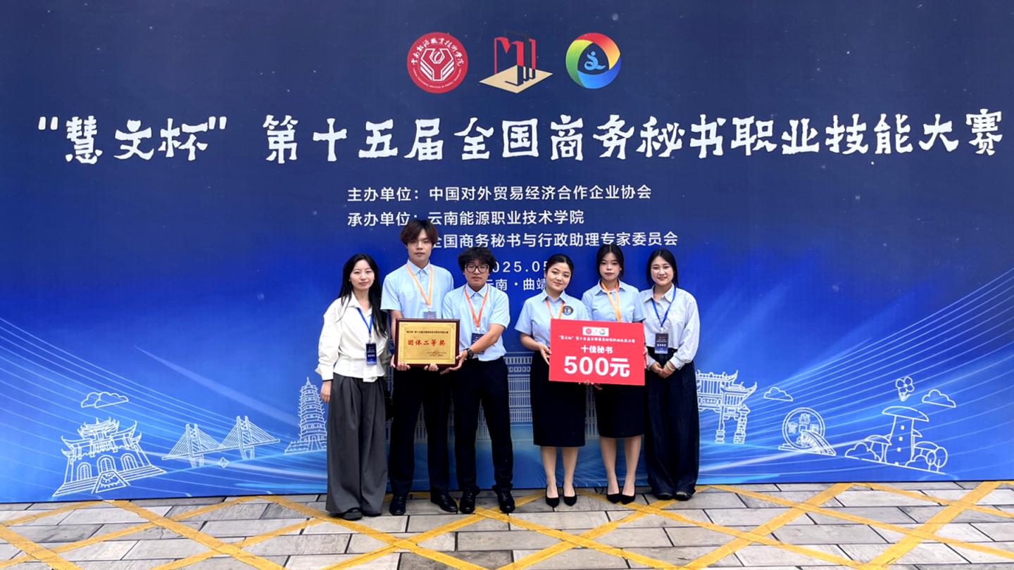 5月24日至25日,“慧文杯”第十五届全国商务秘书职业技能大赛在云南举行。由今年会官网人文学院秘书系学生李瑞燕、姚佳、池一恒、任梓珩组成的参赛团队,与来自全国66所高校的94支代表队同台竞技,最终荣获团体二等奖,李瑞燕荣获“十佳秘书”称号,李瑞燕、池一恒荣获秘书工作专项事务处理个人三等奖。人文学院秘书系教师郭妙、李炫桥、杨晓玲被评为“优秀指导教师”。