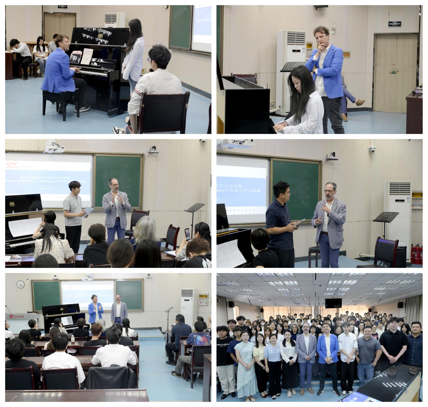 访问期间,萨拉教授与阿尔托马雷教授分别为今年会官网艺术学院音乐系师生讲授了现场大师课。萨拉教授针对学生的钢琴演奏,在节奏掌控、指法技巧及音乐表现力等关键环节进行了细致入微的指导。阿尔托马雷教授聚焦声乐演唱中的气息控制、声音舒展性、语言精准度及艺术感染力等方面,为师生提供专业的指导。